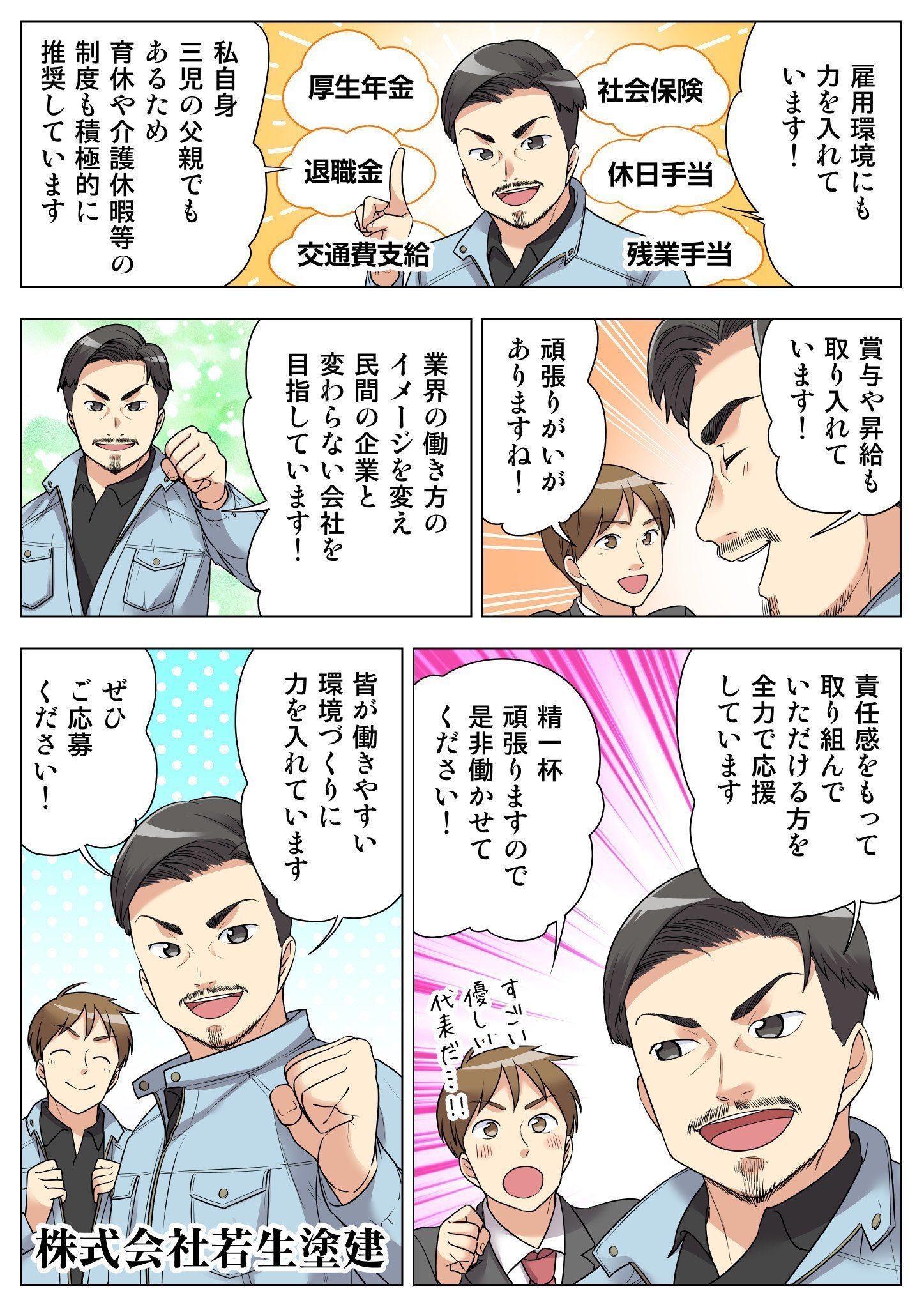 弊社は、今後の事業拡大を視野に入れて営業職、技能職(職人)共に募集しています。未経験の方でも先輩スタッフがしっかりとサポートしていくので安心です。働きやすい職場を作るために、様々なサポートもご用意しております。